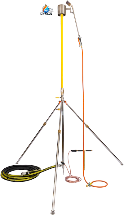 Vorgeschalteter Druckminderer über den ein max. Erdgasdruck von 16 bar auf 5 bar reduziert wird, um die Gas-Ausblase/ Abfackelvorrichtung auch bei max. 16 bar sicher einsetzen zu können.