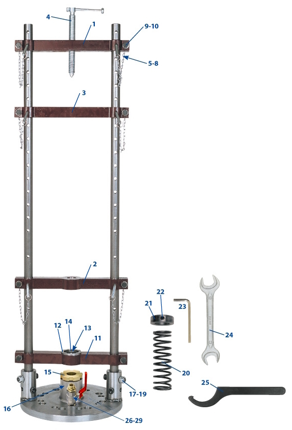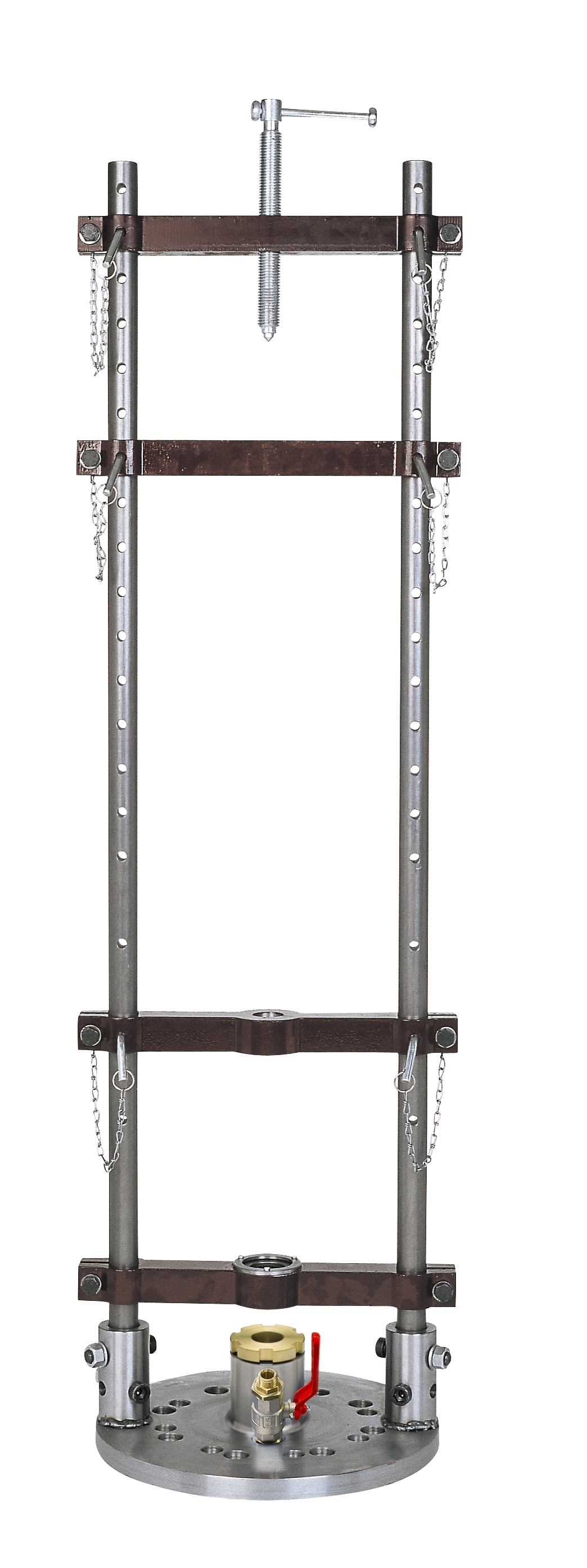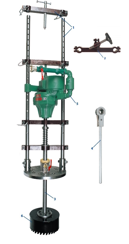 Bei Anbohrungen mit der Anbohrknarre wird statt der Druckbrücke für Motorantrieb, die Druckbrücke mit Spindel eingesetzt. Der Vorschub wird dann über die Spindel zugestellt. Ebenso erfolgt nach der Anbohrung die Rückführung der Bohrstange über die Druckbrücke mit Spindel.