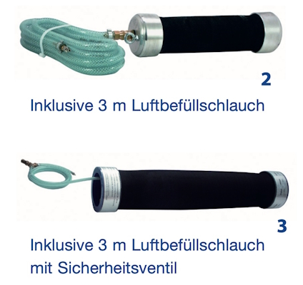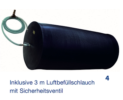 Nennweite 500 - 1000 mm, Länge 1050 mm, Blaseninnendruck 1,5 bar |