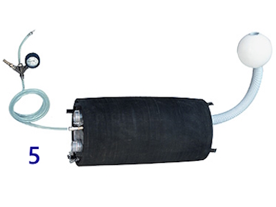 Nennweite 250 - 600 mm, Länge 1110 mm, Blaseninnendruck 1,5 bar, Durchgang 1 x 2” / 1 x ¾” Inklusive 3 m Luftbefüllschlauch mit Sicherheitsventil. (Schwimmer ggf. extra bestellen) |